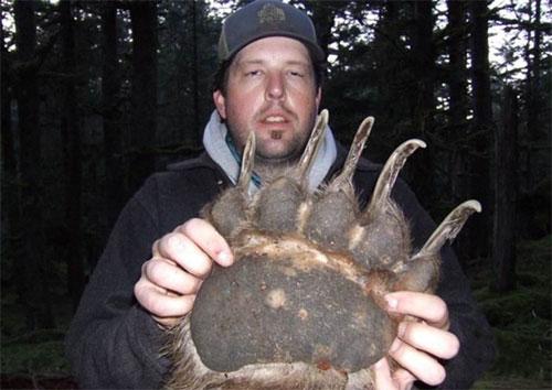 Удивительно, но шатун, за которым егерями была объявлена настоящая охота, достигал ростом в 2.25 метра - для бурых медведей поистине невероятных размеров особь! Какой силой обладал мишка при таких габаритах - можно себе представить, взглянув только на его лапу.