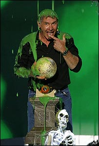 В этом году на вручении наград детского телеканала Nickelodeon "чести" быть облитыми удостоились Харрисон Форд, Кэмерон Диаз и Орландо Блум. По традиции, так поступают со всеми победителями церемонии.