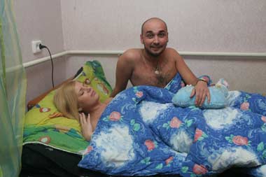 Выйдя из ванной, Сторож уже улыбался. А вот Рита так и продолжала лежать тихонько под одеялом. Андрею это не понравилось, и, чтобы вытащить ее оттуда, он залез к ней и стал ее просто выталкивать. Домашнее шоу усилили Дима Тодорюк с Игорем Воевуцким – они в это время нагло бросались во влюбленную парочку подушками.