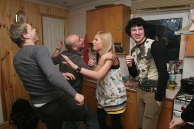 Не повезло «авиатору» Андрею Сторожу. Приехав рано утром к нему на дачу вместе с его коллегами – еще двумя солистами группы «Авиатор» – Димой и Игорем, журналисты застали звезду врасплох. Ничего не подозревая, тот с заспанными глазами в одних трусах открыл дверь, а за ним выбежала полураздетая девушка. И не просто девушка, а участница группы «Арктика» – Рита Захаренкова, сообщает БЛИК. Андрей убежал в ванную, чтобы натянуть на себя штаны, а Рита с перепугу нырнула снова в кровать.