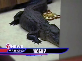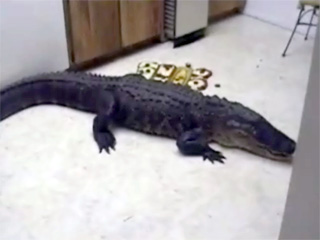 По словам 66-летней Сандры Фрости, аллигатор, по всей вероятности, забрался на территорию ее сада в городе Олдсмар через заднее крыльцо, проник в дом через открытую дверь, прошел через гостиную и по коридору добрался до кухни.