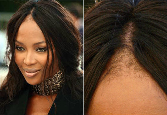 Темнокожая супермодель Наоми Кэмпбелл оказалась минувшим вечером в центре обсуждения. Ддело а том, что одна из самых красивых женщин в мире, похоже, начала лысеть. Наоми выглядела идеально, не считая укладки с пробором посередине головы, откуда проглядывала лысина - будто модели вырвали из головы клок волос, пишет ФАКТNEWS.