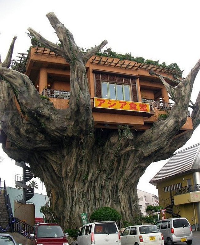 На юге Японии по 58 шоссе находиться парк Онояма. А есть там один ресторанчик на дереве, инсталляция в реальности, потрясающая воображение