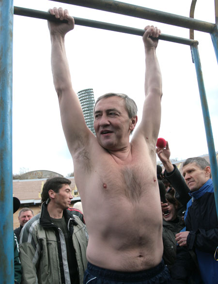 Красный джемпер политику особенно к лицу, но тут есть свои нюансы. Леониду Черновецкому стоило бы запомнить, что под такие вещи обязательно нужно поддевать что-нибудь из нижнего белья, особенно при выступлениях на свежем воздухе. Иначе достоянием его поклонников становятся не только пламенные речи мэра, а и его торчащие соски.