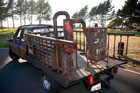 Что только не придумают автолюбители для экономии средств на бензин. Пикап, изображенный на фотографии, работает на газе, который получает из кофейной гущи. Установленный в автомобиле газогенератор сжигает кофе, образуя горючий газ, сообщают NEWSLAND.