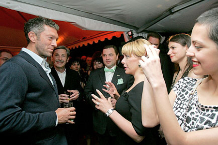 Обещавшие заглянуть на огонек Жерар Депардье и Пьер Ришар так и не появились. Зато попробовать украинского сала, водки и соленых огурцов явился французский красавчик Венсан Кассель («13 друзей Оушена», «Ненависть», «Имменниница»). Вальяжный и коммуникабельный Кассель вызвал ажиотаж среди приглашенной женской части.