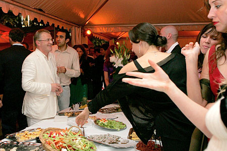 Также гостей угощали французскими закусками — канапе с красной икрой и дыня с ветчиной. «Рядом с нами проводила прием и российская делегация, — рассказал нам один из гостей вечеринки, продюсер Александр Ткаченко. — Но мне показалось, что их вечеринка была несколько пафосной. За огромными столами с белыми скатертями были рассажены гости, которые общались под выступление джазмена Игоря Бутмана. У нас же был фуршетный вариант, и каждый нашел себе интересного собеседника. Разошлись мы около часа ночи. Россияне, говорят, пиршествовали еще часа два».