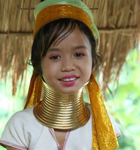 Кольца, которые носят женщины каян, могут достигать веса в 10 кг и более. С годами под их давлением кости плеч опускаются, и шея зрительно вытягивается. В лагерях беженцев на границе между Таиландом и Мьянмой (Бирмой) живут десятки тысяч представителей народности карен, которые бежали из Бирмы от военной хунты и бедности.