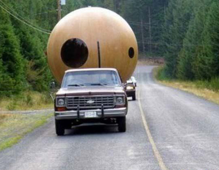 На что только ни идут люди, дабы быть поближе к природе. Такой "шарик" диаметром 4 метра легко можно перевезти на прицепе пикапа. И повесить прямо в лесу, используя относительно несложную конструкцию. Грибники, случайно наткнувшиеся на этот "объект", наверняка будут потом рассказывать, что видели то ли жилище гномов, то ли летающую тарелку! Попасть в дом очень просто, даже ребенок справится с этой задачей. В комнате площадью около 10 квадратных метров с комфортом могут разместиться (и даже выспаться) 3 человека.