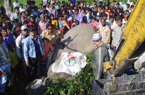 Усама на самом деле убит, потребовалось 20 пуль, чтобы заставить его пасть замертво. Сотни сельских жителей собрались в субботу, чтобы посмотреть на мертвого слона.
