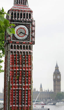 В Лондоне выставлена 6-метровая башня, изображающая знаменитый Биг Бен и изготовленная из банок из-под кока-колы, передают ФАКТNEWS.