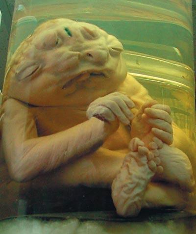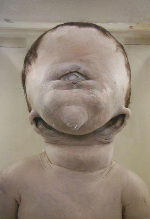 Есть в коллекции еще младенец с одним глазом и смещёнными ушами - последствия употребления наркотиков во время беременности…