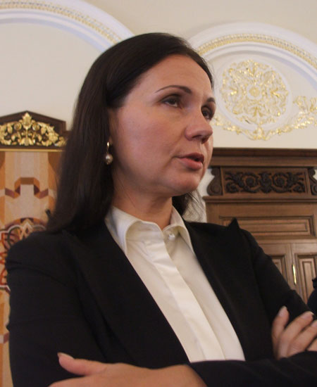 Еще одна опора Виктора Ивановича - бывший член Центральной Избирательной Комиссии, представитель президента Украины в Конституционном Суде и ЦИКе Марина Ставнийчук ждала представителей СМИ на улице. По ее словам, она только что вернулась с международной конференции из Австрии и поэтому не может принять всех желающих на своем рабочем месте. Тем не менее, она с радостью согласилась прокомментировать последние парламентские известия и выход из правящей Коалиции демократических сил двух народных избранников.
