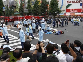 Като врезался на автомобиле в толпу пешеходов в крупнейшем торговом районе Акихабара, после чего принялся резать встречных охотничьим ножом.