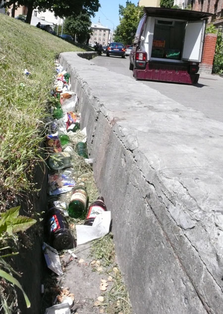 У самого дома растут цветы и господствует идеальная чистота, ведь об этом заботятся три соответствующие организации. Но стоит отойти на несколько метров, и в глаза падает самый обычный мусорник, спрятанный в узенькой канаве. Дворники, наверно, просто «не замечают» этого безобразия, а вот иностранных почетных гостей Екатерины Ющенко такая «экзотика» очень удивляет. По словам очевидцев, почтенные мужчины в галстуках и элегантные леди не ограничивают свое передвижение возле офиса чистенькими дорожками и кое-где подходят к «границе», за которой и созерцают мусорное хранилище.