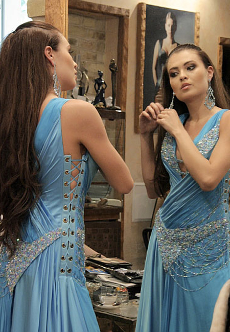 Вся работа длилась около трех месяцев, а на пошив корсетного платья было задействовано пять портных. Причем наряд создавали с подтекстом. Идея платья - пропаганда здорового образа жизни, красоты души и тела и, соответственно, пропаганда против употребления наркотиков.