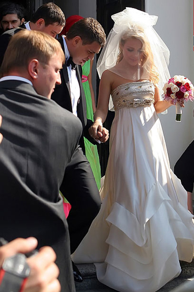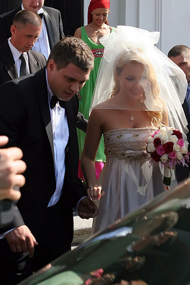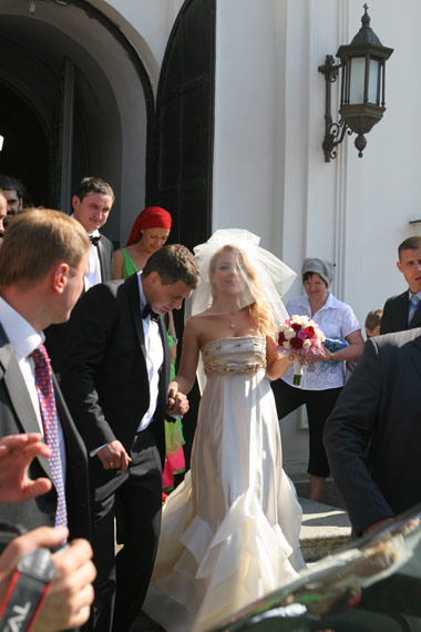 На церемонию, прямо на территорию Лавры, молодые приехали на разных авто – она на темно-сером «ягуаре», он на черном «лексусе». Под крики «Тина, Тиночка!» Кароль, скромно склоня голову, быстро скрылась в дверях собора. Все едва успели разглядеть бежево-золотистое платье невесты. А уже через 40 минут звезда так же молниеносно выпорхнула обратно в свое авто, одарив всех весьма скудной улыбкой. За ней в «ягуар» погрузился и жених. Поклонники, ожидавшие радостных улыбок звезды, не удостоились даже приветствия от своего кумира. В толпе, окружавшей собор, кто-то вслух констатировал, мол, что-то она не очень счастливо выглядит…