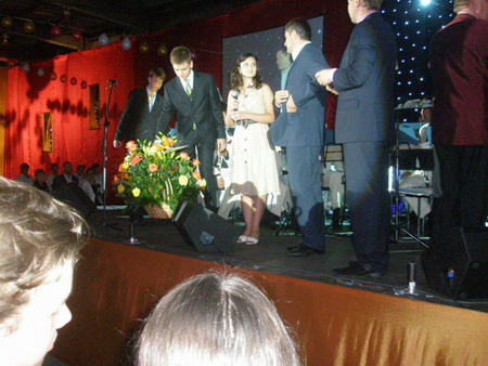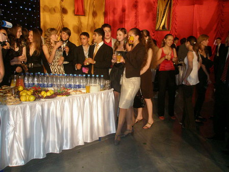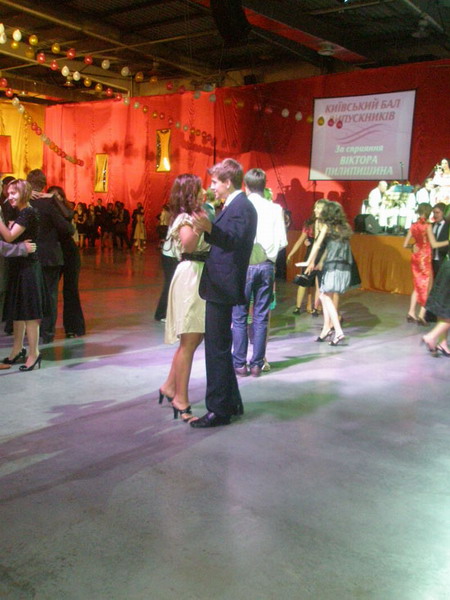 Пили подростки сок, хотя под стол, конечно, никто не заглядывал, фотографировались, и танцевали вальс под звуки оркестра. Позже на сцену вышли Наталия Могилевская и Влад Яма, которые поздравили выпускников с праздником и преподали им свой урок танца.