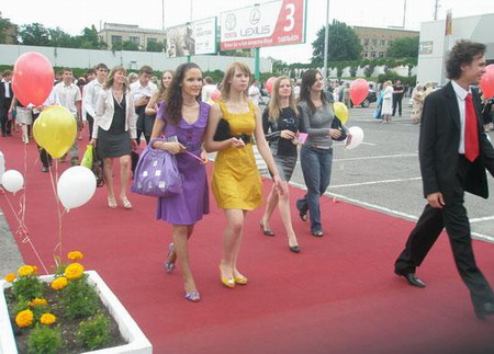 Вчера, 19 июня, в Киеве торжественно состоялся первый в этом году выпускной бал. В одном из выставочных центров столицы собрались теперь уже бывшие школьники Шевченковского района. В 19.00 выпускники прошлись по красной дорожке, украшенной воздушными шариками, в зал, где их ждали банкетные столики, фотографы, телеоператоры, учителя и родители.