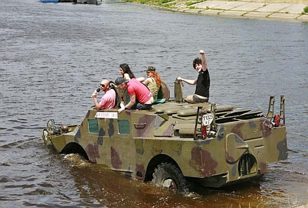 "Когда мы заехали в воду, мне показалось, что мы едем по дну. Но на середине Днепра водитель сказал нам, что под бронетранспортером 15 метров воды. А еще БТР едет "с ветерком" - у меня даже кепка слетала", - пожаловалась Слава.