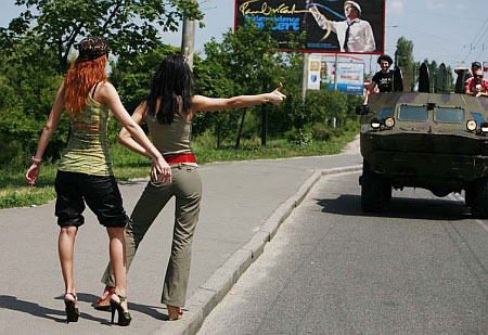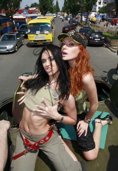 Теперь они сняли свой экзотичный променад улицами Киева на бронетранспортере.