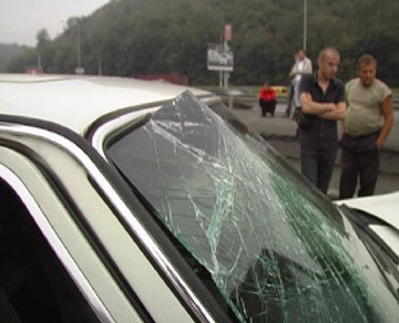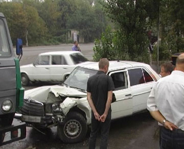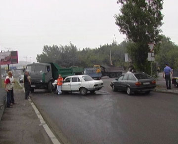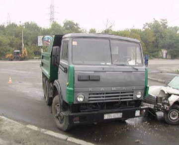 На улице Промышленная в Киеве произошло столкновение автомобиля "Мерседес" с КАМАЗом