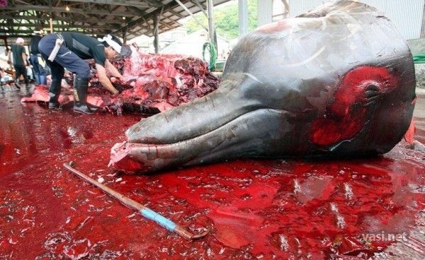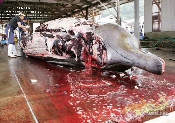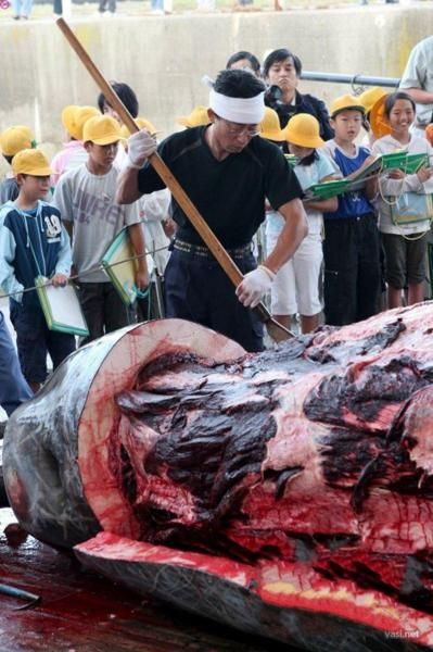 В Японии выловили огромного 600 кг дельфина, которого назвали TUNA, и порезали его для приготовления пиршества.