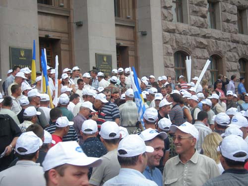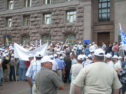 Около 500-600 членов Ассоциации международных перевозчиков сегодня пикетировали здание Киевской городской государственной администрации с требованием отменить запрет КГГА на въезд большегрузных автомобилей в пределы столицы.