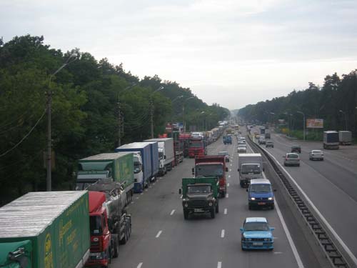 С 1 июня, в соответствии с распоряжением Киевского городского председателя Черновецкого, введено ограничение на въезд в столицу большегрузного транспорта общей массой свыше 4,5 тонны с 7.00 до 20.00. Отныне в часы пик грузовики вообще не будут въезжать в город. С 10.00 до 17.00 въезд разрешен только большегрузным авто с отметкой «TIR».