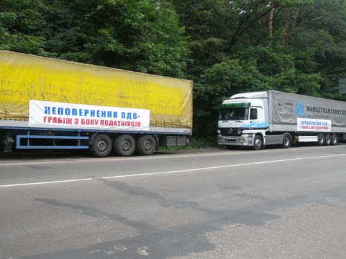 Напомним, что 8 июля, около 500-600 членов АсМАП с утра пикетировали здание КГГА, протестуя против запрета с 1 июня на въезд большегрузных автомобилей в Киев.