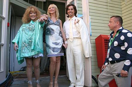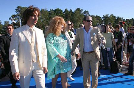 Первыми дорожкой прошлись ведущая "Новой волны" Лера Кудрявцева и певец Сергей Лазарев. А уже за ними "новобрачная-2008" Алла Пугачева и режиссер-постановщик шоу Александр Ревзин.