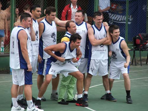 Что же касается прессового баскетбольного турнира, то в нем принимали участие телеканалы «Новый» и «ICTV», радиостанции «Gala Radio» и «EuropaFM» и другие. По результатам жеребьевки в первой игре встретились «Новый» канал и радиостанция «Gala Radio». А в финал пробились команды «Нового канала» и радиостанции «EuropaFM». Первое место досталось спортсменам-радийщикам под руководством капитана команды генерального продюсера «EuropaFM» Андрея Джеджулы. Наградили баскетбольным мячом самого лучшего игрока турнира из команды «Gala Radio». После всех награждений, поздравлений и фотосессий, команды телеканала «ICTV» и радиостанции «Gala Radio» сыграли дружеский матч.