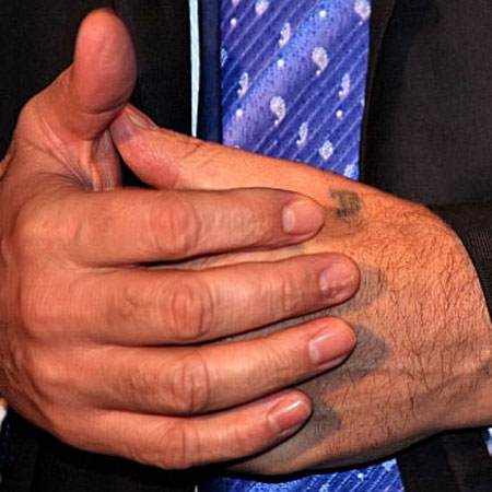 Если мачоватый певец Вася Бондарчук татуировку в области штанов рисует лишь временно, то региональный "підрахуй" Сергей Кивалов уже который год носит свою метку на руке.