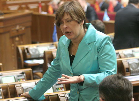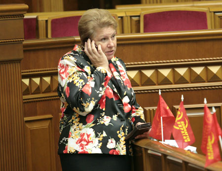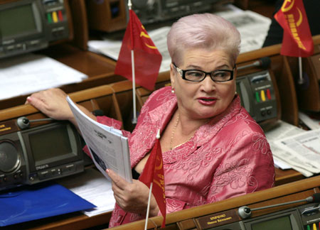 Коммунистка Екатерина Самойлик тоже видит все пока в «розовом цвете». Правда, не в таком «ядовитом», как ее коллега из БЮТ. Зато с «изюминкой» - вышитыми цветами по пиджаку и черным бельем под ним. Она, кстати, как можно заметить, подбирает наряды под цвет помады и даже под цвет волос. А вот другая коммунистка, Алла Александровская, предпочла одежду с элементами партийной символики: с красными «кумачевыми» цветочками.