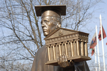 Говорит, памятник вообще планировали поставить на другой территории, но потом оставили в Международном гуманитарном университете. "Это сами журналисты выдумывают, что я там позировал", - заверяет регионал.