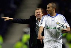 Второй тайм напоминал первый: португальцы атаковали, а киевляне защищались и надеялись на контратаки. Именно для этой цели и был выпущен реактивный Бангура, который, к сожалению, не смог за все отведенное ему время хоть раз нормально зацепиться за мяч. «Порту» прижало «Динамо» к штрафной, и атаки «драконов» были очень опасными. Хотя стоит отдать должное нашей защите, которая справлялась со всеми атаками гостей. А в моменты, когда наша оборона все-таки допускала ошибки, очень точно играл Станислав Богуш. Но, к сожалению для киевских болельщиков, даже он не смог выручить команду: на 70-ой минуте, разыграв стандартную комбинацию, «Порту» наказал «Динамо». После подачи со штрафного наши защитники упустили португальца Роландо, который с близкого расстояния поразил ворота киевлян. После того как счет стал равным, киевские игроки не смутились и продолжали гнуть свою линию, ведь ничейный результат устраивал команду Семина. Они опасно контратаковали, но при этом не забывали главное внимание уделять обороне. И киевляне могли быть вознаграждены за свою слаженную игру: Милевский отдал выверенную передачу на Вукоевича, и хорват пробил в ближний угол; к сожалению, голу помешала штанга ворот голкипера португальцев. «Динамовцы» решили, что могут еще вырвать победу в поединке, и всеми силами ринулись забивать победный гол, за что были моментально наказаны: уже в добавленное арбитром время молниеносная контратака гостей завершилась прострелом в штрафную киевлян и точным ударом капитана «Порту» Лучо Гонсалеса. На стадионе воцарилась мертвая тишина…
