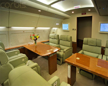 Несколько лет назад для главы государства создали новый авиалайнер Ан-74ТК300. При отделке салона главного лайнера страны учли и особые пожелания супруги президента: к примеру, именно по ее желанию в отделке салона преобладают светлые тона. Облицовочные панели и столы сделаны из легкого композитного материала, покрытого шпоном красного дерева, и украшены инкрустациями янтаря. В президентской комнате есть два широких удобных кресла, обтянутых светлой кожей, складывающийся стол, бар, аудио- и видеоаппаратура. Есть здесь и рабочий кабинет. Для главы государства оборудован отдельный блок обслуживания, в него входят кухня и санузел. Помещение для сопровождающих лиц – комфортабельное, с широкими креслами, расположенными на расстоянии 32 дюйма (80 сантиметров) друг от друга – это международный стандарт. А дверь самолета Ан-74 сделана с раскладывающимся трапом, который пригодится, если лайнер сядет на плохо оснащенный аэродром. Металлические детали – ручки, части светильников – выполнены из 18-каратного золота. Поговаривают, по замыслу президента, предполагалось покрыть их серебром, но супруга Ющенко якобы настояла на золоте. Ориентировочная стоимость Ан-74ТК300VIP – $12 млн.