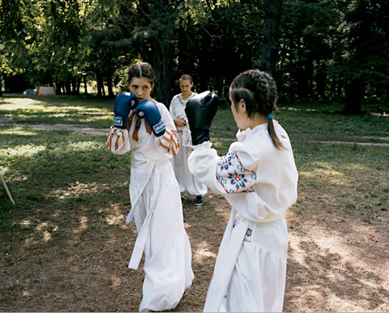 Французский фотограф Гийом Эрбо путешествовал по Европе в поисках амазонок и нашел их, как ни странно, на Украине в Карпатах. Украинские «амазонки» изучают рукопашный бой и холодное оружие, одеваются в национальную одежды, а иногда у них на груди можно увидеть портрет Юлии Тимошенко.