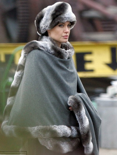 В меховой шапке и в подбитом мехом пончо героиня Джоли вынуждена пережить немало испытаний, чтобы отстоять свое доброе имя.