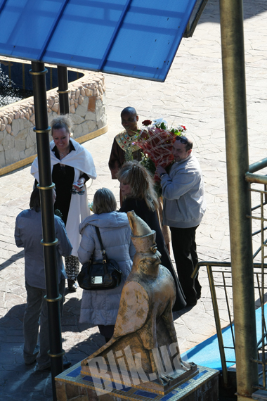 Тут общение прервала большая охапка нарциссов, метко брошенная какой-то женщиной к ногам Пугачевой. Та взяла один нарцисс, понюхала, кокетливо позируя фотографам, и укатила в плавучий отель «Флотель Фараон», который находится на Набережно-Крещатицкой. Там к ее приезду выселили всех постояльцев и устроили паспортный контроль на входе, чтобы никто не помешал звезде.