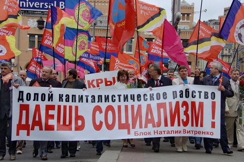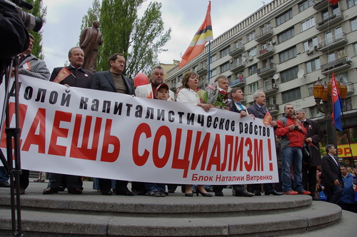 Несмотря на заявленные грандиозные акции протеста против действующей власти представители левых сил Украины так и не смогли громко заявить о себе. Протокольные митинги завершились точно по расписанию, а мелкий дождь, моросивший в Первомай над столицей, разогнал всех политических пролетариев по домам.