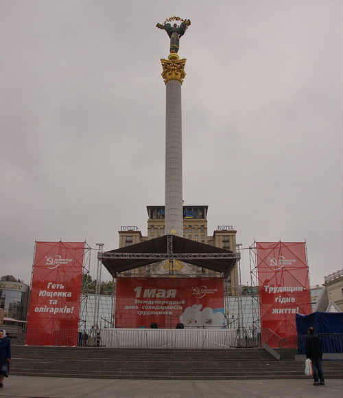 Первыми отмаршировали сторонники Компартии Украины. В день солидарности всех трудящих лидер КПУ Петр Симоненко призвал украинцев начать всеукраинскую антибуржуазную революцию. После протокольных торжеств, которые закончились к 11.00 коммунисты решили продолжить праздновать на Майдане, где у подножья памятнику Независимости расположилась красная сцена.