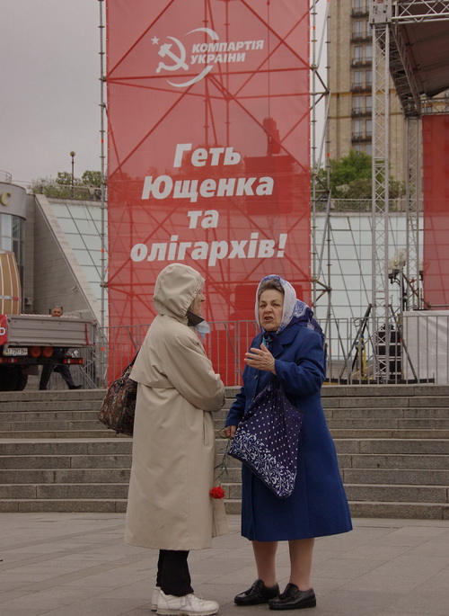 Пока лидеры собравшихся политсил критиковали власть и олигархов, неподалеку от митинга молодые люди со списками в руках шустро отсчитывали 20-ти гривневые купюры. Протокольные митинги завершились точно по расписанию, а мелкий дождь, моросивший в Первомай над столицей, разогнал всех политических пролетариев по домам.