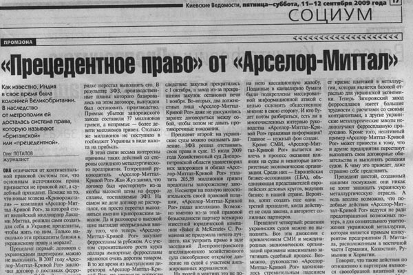 Как известно, Индия в свое время была колонией Великобритании. В наследство от метрополии ей досталась система права, которую называют «британской» или «прецедентной». Она отличается от континентальной правовой системы тем, что основным источником права признается не правовой акт, а судебный прецедент. Похоже на то, что новые хозяева Криворожстали – компания «Арселор-Миттал Кривой Рог», за которой стоит индийский миллиардер Лакшми Миттал, решили сами создать для себя в Украине прецеденты, чтобы жить по ним, а не по украинским законам. Только прецеденты эти далеки и от права, и от морали.