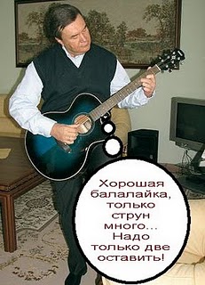 Не стало исключением и недавнее выступление Януковича на ICTV, где он озвучил одну из своих особенно полюбившихся шуток о символе государственной власти – волшебной балалайке, состоящей из одной палки и двух струн. Однако, «проффесорская» притча о балалайке – нечто большее, чем просто шутка. Для Януковича однопалочный и двухструнный инструмент является предметом вожделенной мечты.