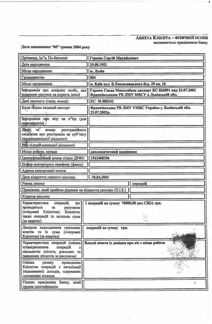 30 апреля 2004 года Анна Герман открыла депозитный счет. На него тут же была переведена оная круглая сумма.