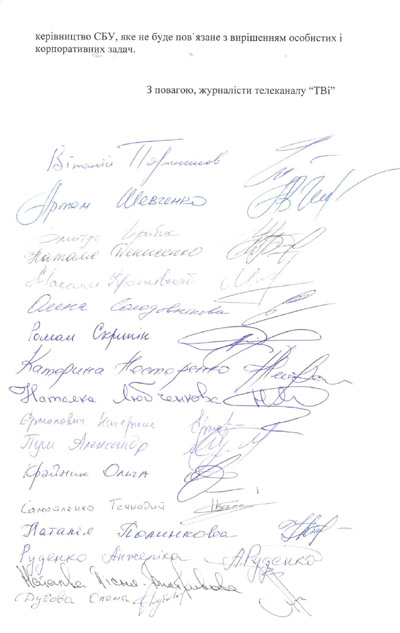 Письмо подписали журналисты канала: Виталий Портников, Артем Шевченко, Роман Скрыпин, Екатерина Нестеренко, Анжела Руденко, Наталья Писня и др. Всего 17 подписей.