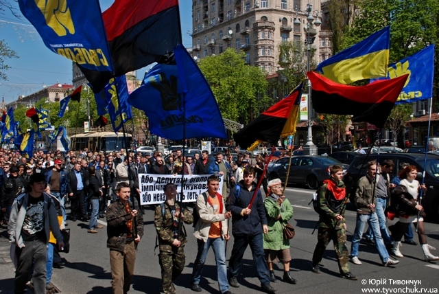Доминировал здоровый правый спектр или, как говорят о них российские журналисты, численно превосходившие вчера украинские СМИ (праздник то какой, День Флота!) «крайне правые».