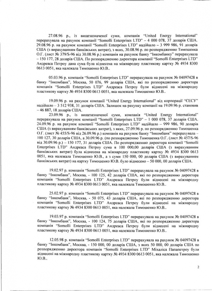 Интересный нюанс: свои значительные траты Тимошенко осуществляла именно в Москве, расплачиваясь при этом карточкой, эмитированной российским «Инкомбанком», которую Юлия Владимировна получила в качестве сотрудницы компании «Somolli Enterprises Limited» - оффшорной компании, которой владели супруги Александр и Юлия Тимошенко. Но эта компания, судя по всему, далеко не тот «скромный бизнес», который позволил супругу экс-премьера приходить поддерживать ее с золотым хронометром ценой в десятки тысяч долларов на запястье.