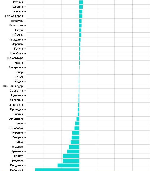 Forbes.ua на основании данных МВФ составил рейтинг стран по темпам сокращения международных резервов. И если посмотреть на карту, на ней найдется с десяток стран, где они сокращаются даже быстрее, чем в нашей стране. Скажем, в Исландии с начала 2012 года по конец сентября они уменьшились вдвое – с $9,2 млрд. до $4,3 млрд., в Иордании – на четверть, с $14 млрд. до $9,2 млрд.